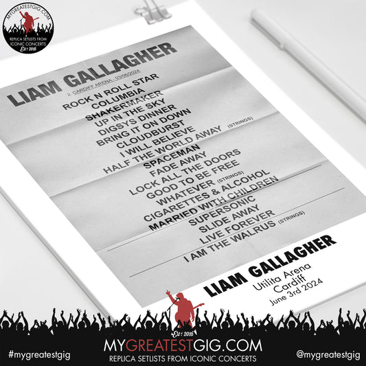 Liam Gallagher - Cardiff - June 3rd 2024 Replica Setlist Poster
