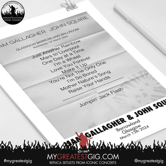 Liam Gallagher & John Squire - Glasgow - March 13th 2024 Replica Setlist Poster