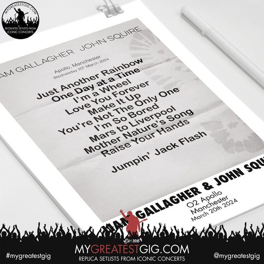 Liam Gallagher & John Squire - Manchester - March 20th 2024 Replica Setlist Poster