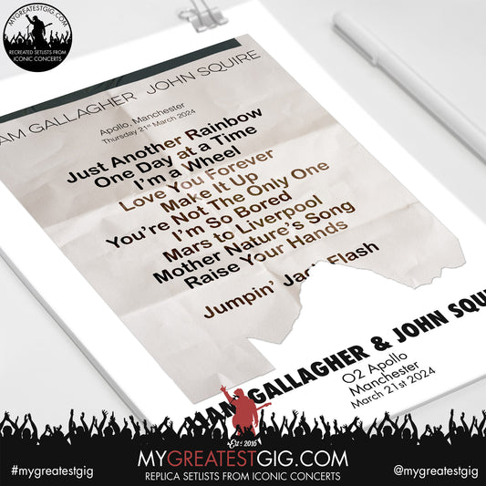 Liam Gallagher & John Squire - Manchester - March 21st 2024 Replica Setlist Poster