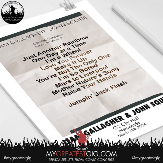 Liam Gallagher & John Squire - Newcastle - March 18th 2024 Replica Setlist Poster