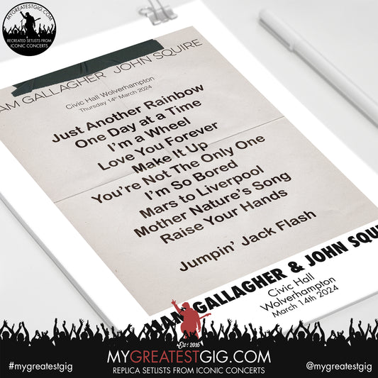 Liam Gallagher & John Squire - Wolverhampton - March 14th 2024 Replica Setlist Poster