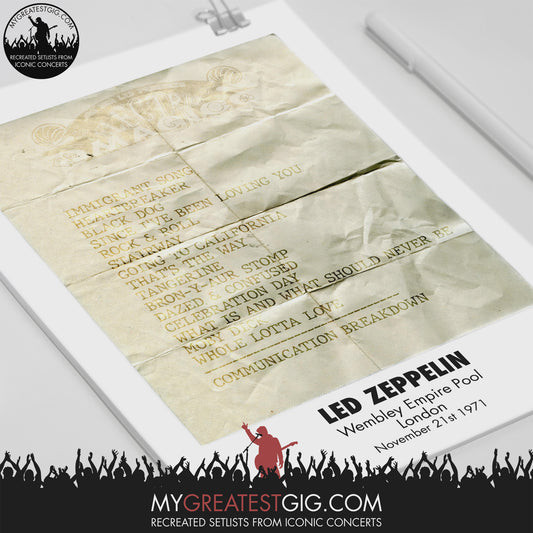 Led Zeppelin - London - Nov 21st 1971 Recreated Set List Poster