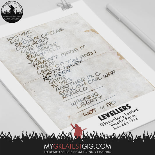 Levellers - Glastonbury Festival - Jun 24th 1994 Recreated Setlist Poster