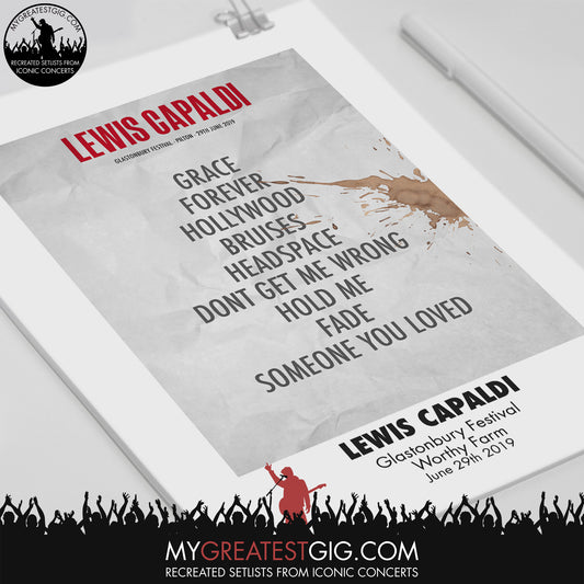 Lewis Capaldi - Glastonbury Festival - Jun 29th 2019 Recreated Set List Poster