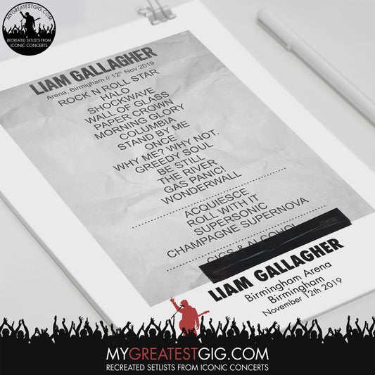 Liam Gallagher - Birmingham - Nov 12th 2019 Recreated Set List Poster