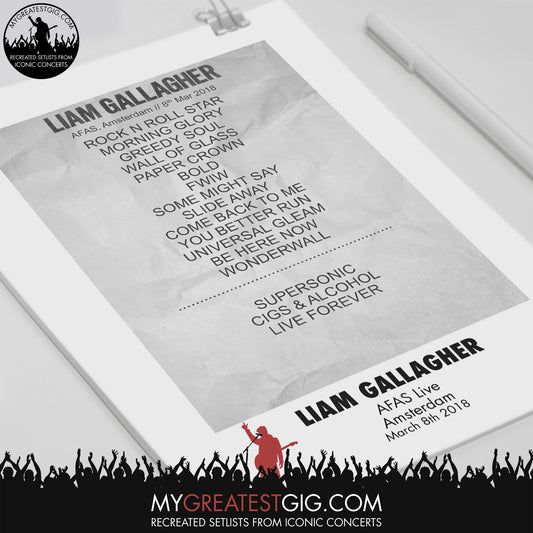 Liam Gallagher - Amsterdam - Mar 8th 2018 Recreated Set List Poster