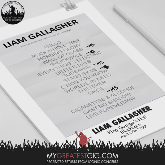 Liam Gallagher - Blackburn - Apr 27th 2022 Recreated Setlist Poster