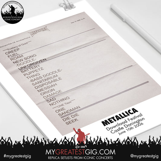 Metallica - Download Festival - June 10th 2006 Replica Setlist Poster