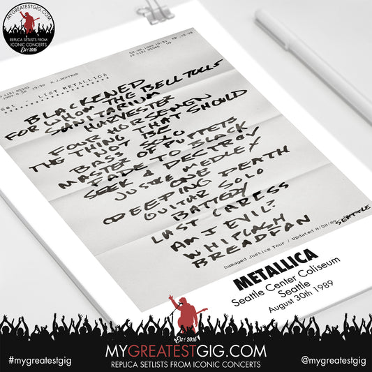 Metallica - Seattle - August 30th 1989 Replica Setlist Poster