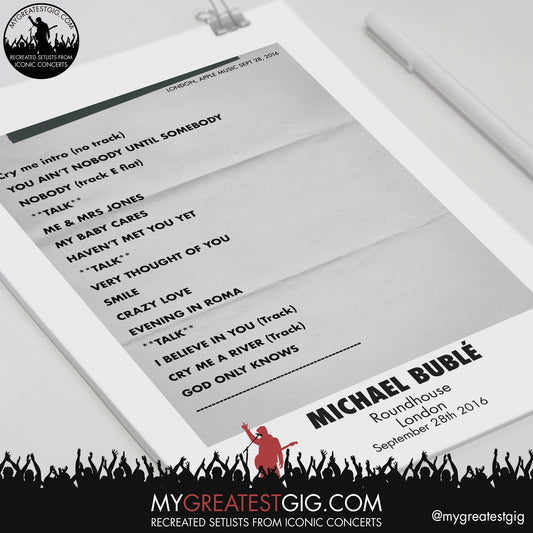 Michael Bublé - London - September 28th 2016 Recreated Setlist Poster