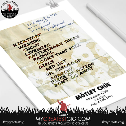 Mötley Crüe - London - August 14th 1991 Recreated Setlist Poster