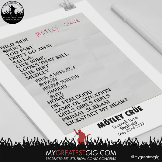 Mötley Crüe - Sheffield - May 22nd 2023 Recreated Setlist Poster