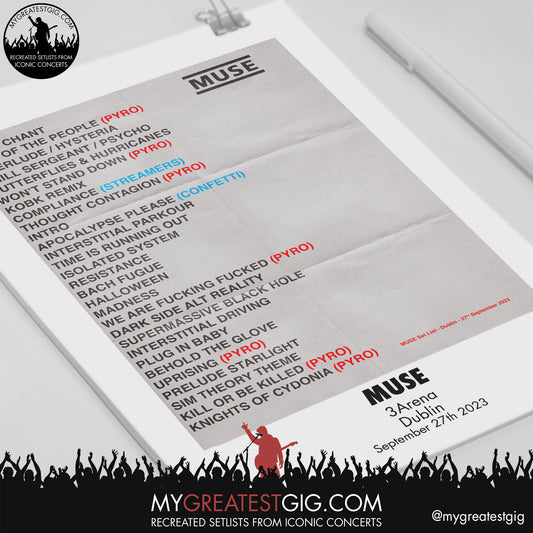 Muse - Dublin - September 27th 2023 Recreated Setlist Poster