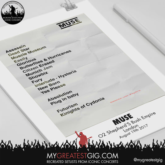 Muse - London - August 19th 2017 Recreated Setlist Poster