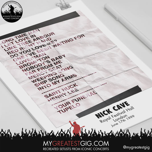 Nick Cave - London - June 17th 1999 Recreated Setlist Poster