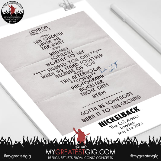 Nickelback - London - May 21st 2024 Replica Setlist Poster