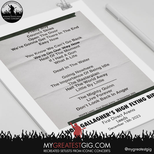Noel Gallagher's High Flying Birds - Leeds - December 18th 2023 Recreated Setlist Poster