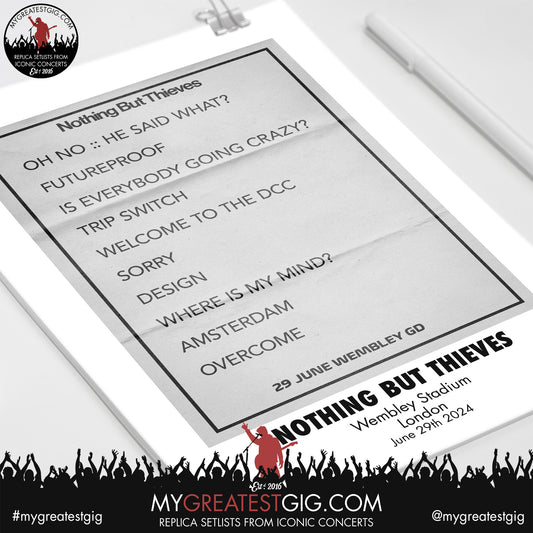 Nothing But Thieves - Wembley Stadium - June 29th 2024 Replica Setlist Poster