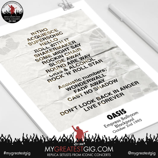 OASIS - Blackpool - October 2nd 1995 Recreated Set List Poster