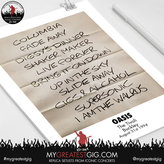 Oasis - Buckley - August 31st 1994 Recreated Setlist Poster