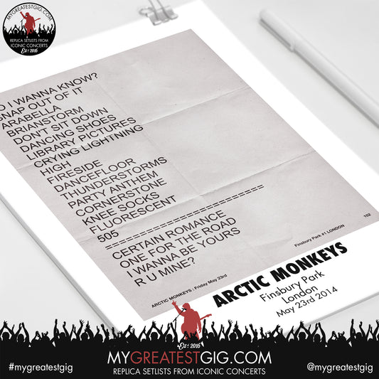Arctic Monkeys - London - May 23rd 2014 Replica Setlist Poster