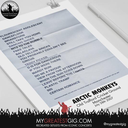 Arctic Monkeys - Manchester - July 28th 2007 Recreated Setlist Poster
