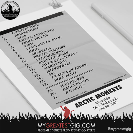 Arctic Monkeys - Middlesbrough - June 5th 2023 Recreated Setlist Poster