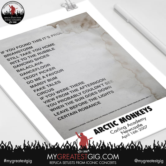 Arctic Monkeys - Newcastle - April 16th 2007 Replica Setlist Poster
