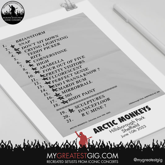 Arctic Monkeys - Sheffield - June 10th 2023 Recreated Setlist Poster