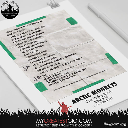 Arctic Monkeys - Sheffield - June 10th 2011 Recreated Setlist Poster