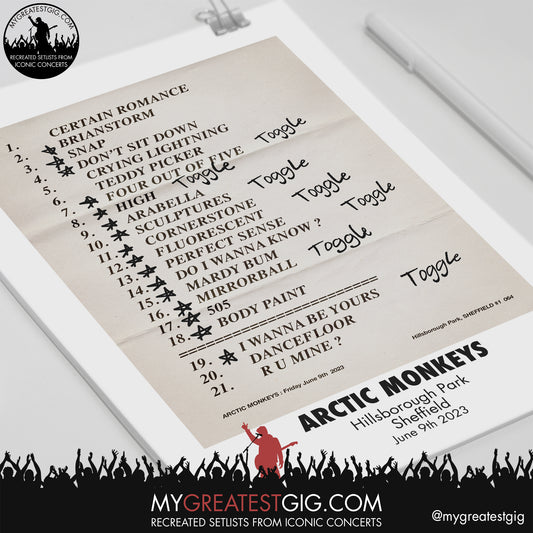 Arctic Monkeys - Sheffield - June 9th 2023 Recreated Setlist Poster