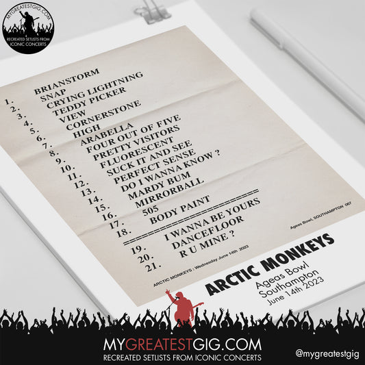 Arctic Monkeys - Southampton - June 14th 2023 Recreated Setlist Poster