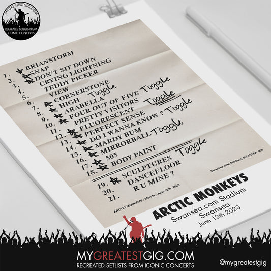 Arctic Monkeys - Swansea - June 12th 2023 Recreated Setlist Poster