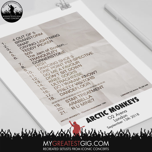 Arctic Monkeys - London - September 10th 2018 Recreated Setlist Poster