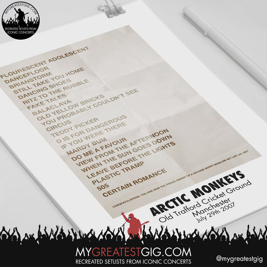 Arctic Monkeys - Manchester - July 29th 2007 Recreated Setlist Poster