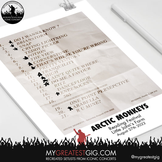Arctic Monkeys - Reading Festival - Aug 27th 2022 Recreated Setlist Poster