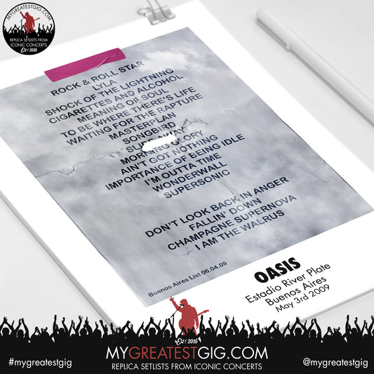 Oasis - Buenos Aires - May 3rd 2009 Replica Setlist Poster