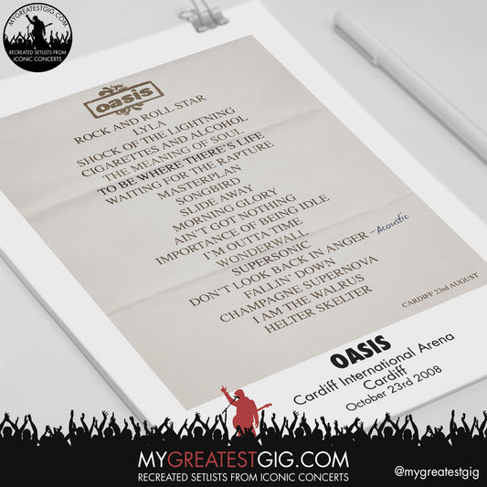 Oasis - Cardiff - October 23rd 2008 Recreated Setlist Poster