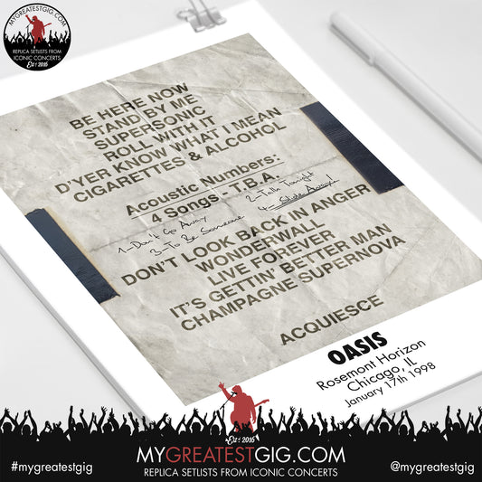 Oasis - Chicago - January 17th 1998 Replica Setlist Poster