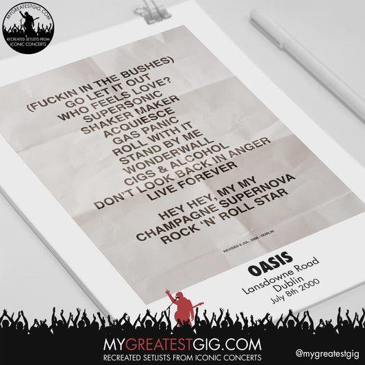Oasis - Dublin - July 8th 2000 Replica Setlist Poster