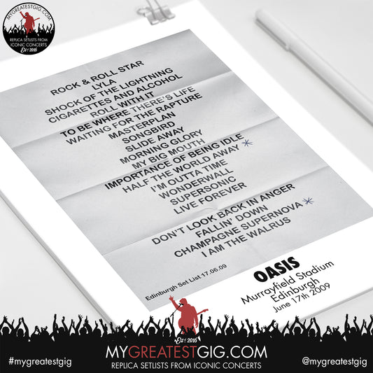 Oasis - Edinburgh - June 17th 2009 Replica Setlist Poster
