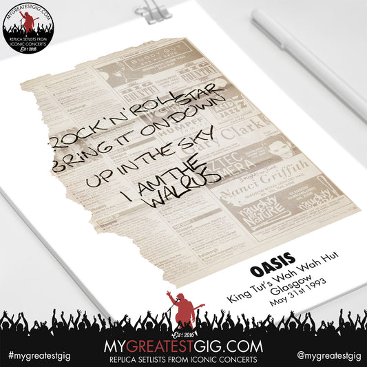 Oasis - Glasgow - May 31st 1993 Replica Setlist Poster