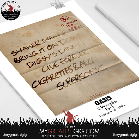 Oasis - Gleneagles - February 6th 1994 Replica Setlist Poster