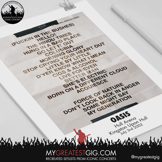Oasis - Hull - July 2nd 2002 Recreated Setlist Poster