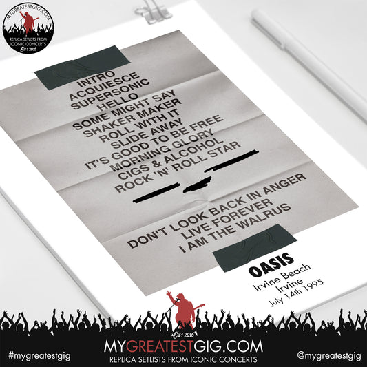 OASIS - Irvine - July 14th 1995 Recreated Set List Poster
