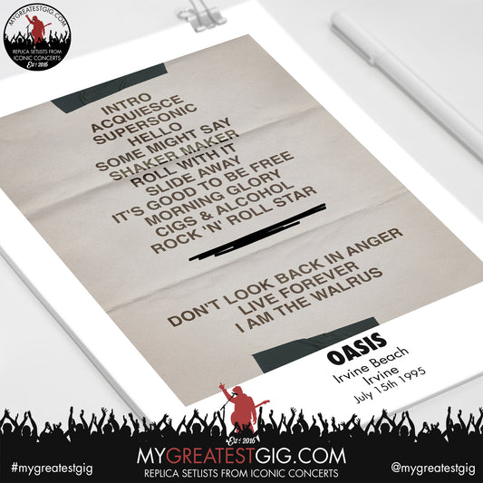 OASIS - Irvine - Jul 15th 1995 Recreated Set List Poster