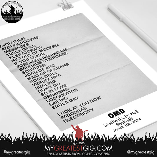 Orchestral Manoeuvres In The Dark -Sheffield - March 10th 2024 Replica Setlist Poster