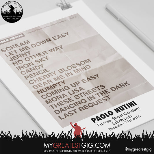 Paolo Nutini - Edinburgh - December 31st 2016 Recreated Setlist Poster
