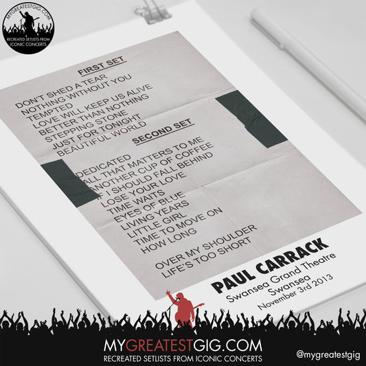Paul Carrack - Swansea - November 3rd 2013 Recreated Setlist Poster